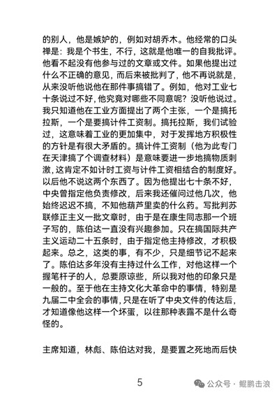 毛主席说:他这个人是不抓阶级斗争的,历来不提这个纲。还是“白猫、黑猫”啊,不管是帝国主义还是马克思主义。
