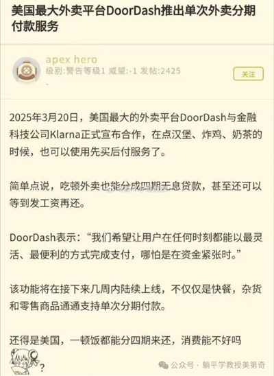 美国穷人现在吃个外卖 ,都四天分期付款。美国这资本主义晚期,果然进化到了高利贷资本主义,这通胀再来的话,红脖子们的肚子肯定能让他们的屁股和嘴巴的支持方向,重新定位。