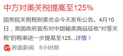 不过这下好了,特朗普对中国关税增加34%,中国再反制34%。2025年4月8日,美国政府宣布又对中国输美商品征收“对等关税”的税率由34%提高至84%。中方也反制调整对原产于美国的进口商品关税由34%提高至84%。中美经贸关系恶化文化和旅游部提示中国游客充分评估赴美旅游风险,谨慎前往。教育部印发通知,鼓励引导高校学生特别是应届毕业生积极参军入伍。