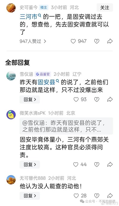 3.在我们国家,县委书记是省管干部,不是市管干部——三河市是县级市,他的主要负责人,是由河北省委任命的,对省管干部的监督,是由河北省纪委负责的。这个事情,如果真的想要彻查到底,就应该河北省纪委介入调查,而不是单纯由廊坊纪委处理。