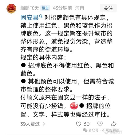 1.三河牌匾的事不大,但反映出来的是民生大事,有多少小商小贩,还指望这个牌匾吸引一些人气、改善一下生意,媒体报道称,当地的牌匾禁用“红蓝黑”,这不是权力本身的任性,是权力背后的官员过于任性,归根结底,是人的问题。