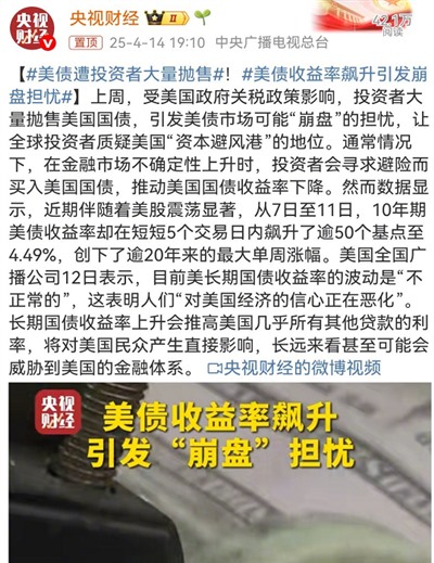 这马上就到新国债的发行日了,结果国债市场崩盘,大量的人抛售美国国债,直接把美国债市的利率拉上了天,等于过去一年白降息了。