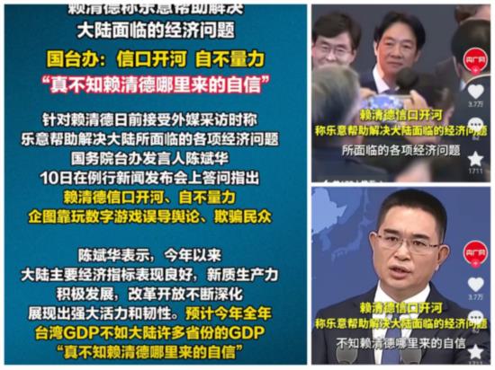 赖清德日前接受《纽约时报》采访时称,台湾今年经济增长率达7.37%,妄称“乐意帮助大陆、共同合作,解决大陆所面临的各项经济问题”。