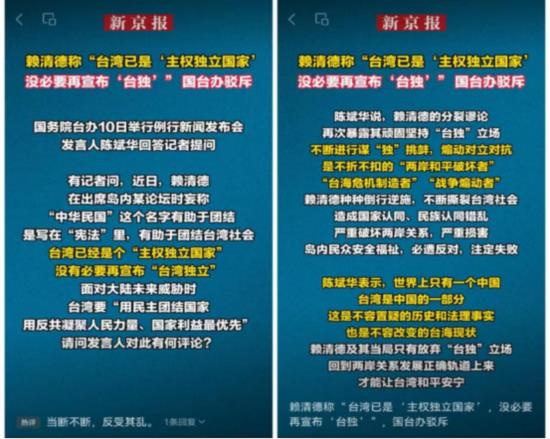 12月10日国台办发言人陈斌华表示,赖清德的分裂谬论,再次暴露其顽固坚持“台独”立场,不断进行谋“独”挑衅,煽动对立对抗,是不折不扣的“两岸和平破坏者”、“台海危机制造者”、“战争煽动者”。赖清德种种倒行逆施,不断撕裂台湾社会,造成国家认同、民族认同错乱,严重破坏两岸关系,严重损害岛内民众安全福祉,必遭反对,注定失败。