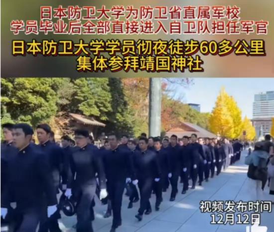 就在我们国家公祭日的前一天,日本防卫省直属军校日本防卫大学学员列队徒步60多公里集体参拜靖国神厕,这不像是“巧合”,倒更像是赤裸裸的挑衅。要知道,这些日本防卫大学的学员毕业后是会直接进入自卫队担任军官的,他们去靖国神厕做什么?该不会是去反思日本军国主义罪行,又或向靖国神厕里的战犯的牌位上撒尿的吧?