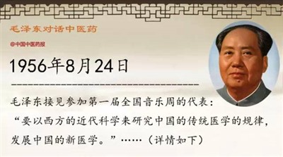 根据毛泽东关于中医工作的指示精神,《人民日报》发表题为《贯彻对待中医的正确政策》的社论,认为发展中医就是“如何通过认真的学习、研究和实践,逐渐使它和现代科学理论相结合的问题,就是要根据现代科学的理论,用科学方法来整理中医学的学理和总结它的临床经验,吸取它的精华,去掉它的糟粕,使它逐渐和现代医学科学合流,成为现代医学科学的重要组成部分”。