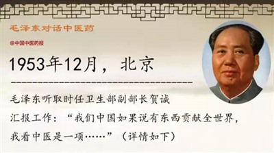 “对中医问题,不只是给几个人看好病的问题,而是文化遗产的问题。要把中医提高到对全世界有贡献的问题。”
