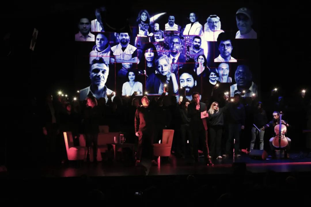 “即使杀死记者,也无法杀死报道”是法国非营利媒体“禁忌故事”(Forbidden Stories)的座右铭。今年2月,他们将世界各地被杀害的调查记者的故事搬进了剧院,用另一种媒介向观众展示了调查新闻的重要和危险。 舞台一片漆黑,只有微弱的白光照亮站成一排的四位演员,他们轮流讲述自己所扮演的被杀害记者的故事。来自世界各地的记者,因为他们的工作而被枪杀、斩首、