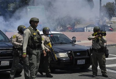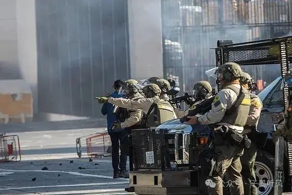 最近美国又开始上演“美丽的风景线”。 美国加州洛杉矶的街头宛如战场一样。 事情起因是,6月6日,美国移民与海关执法局(ICE)等联邦机构执法人员搜捕非法移民,突袭洛杉矶市至少7处地点,包括购物中心和工厂,逮捕44人。 在这次行动中,ICE的执法人员遭到当地社区居民的围堵,双方不断发生肢体冲突。 于是事态开始升级,当天晚上,大约500名抗议者聚集在洛杉矶市中心,高举