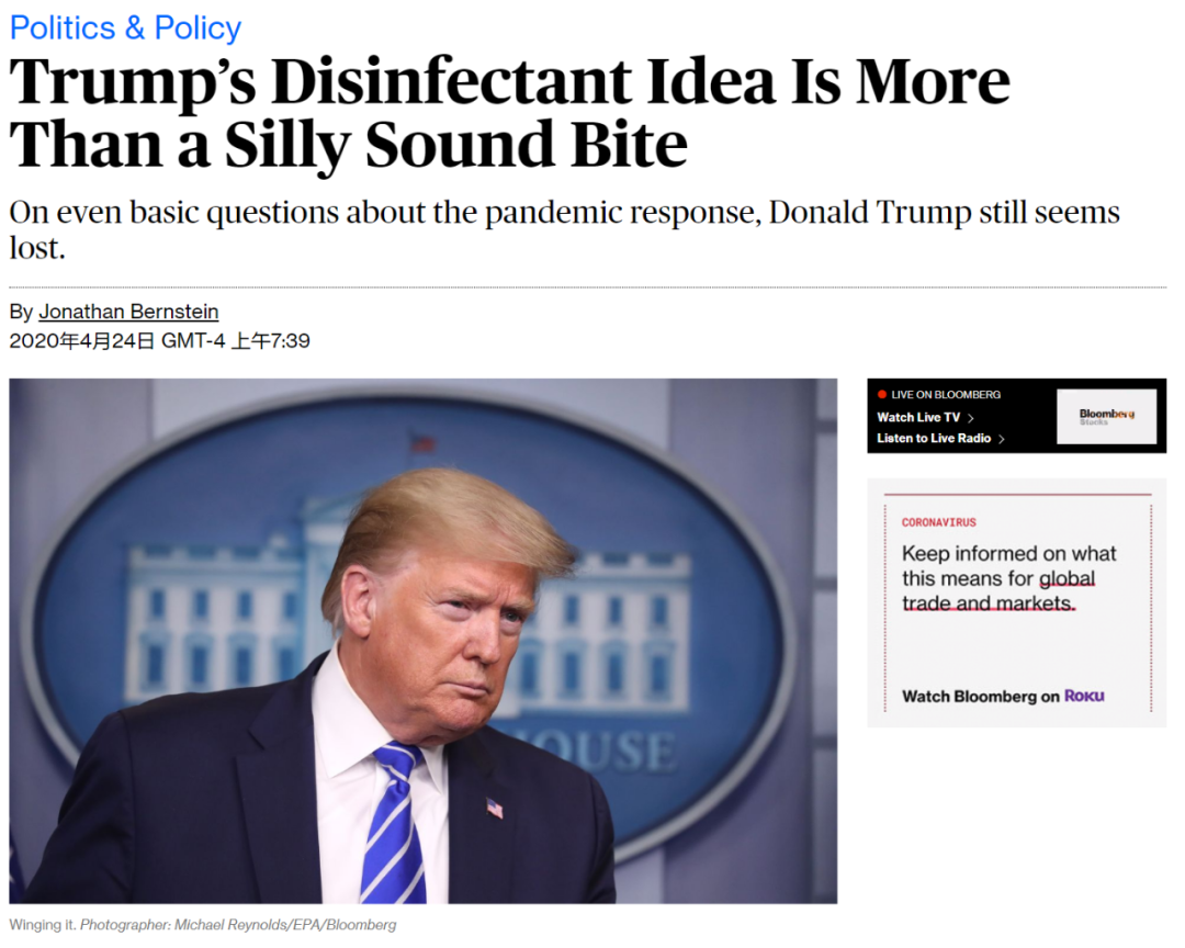 昨天又是美国媒体炸窝的一天,这并不是因为美国确诊人数达到了86万以上,而是特朗普又脑洞大开,灵光闪现,把大家给吓坏了。 23日在疫情简报记者会上,美国国土安全部科学与技术局局长布莱恩表示,美国政府研究人员已确定,新冠病毒在室内和干燥条件下的存活度最佳,当温度和湿度升高时,尤其是在阳光直射下,这种病毒会失去效力。 此外,漂白水能在5分钟内杀死唾液或呼吸道黏液中的病毒,异