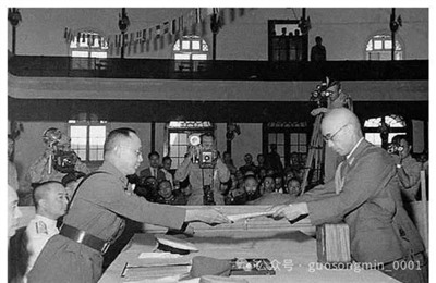 01 1945年8月15日,日本天皇裕仁宣布无条件投降。 9月9日,中国战区日军投降签字仪式在南京中央陆军军官学校大礼堂举行。 中国人民经过八年浴血奋战,才赢得了这个扬眉吐气的日子。 受降仪式理应严肃、庄重,尽显中国做为战胜国的尊严,以告慰在抗战中牺牲的英烈和由于日本侵华而受尽苦难的人民,但由于中国首席受降代表何应钦有严重的亲日、媚日情结,仪式被搞得不伦不类。