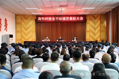 5月6日上午,河南省南街村召开拾金不昧模范表彰大会,以隆重热烈的形式表彰王玉花、付爱香和高振三位同志。 刚刚过去的“五一”黄金周,南街村再次受到社会关注,不但参观旅游的游客络绎不绝,而且安保处和旅游公司员工拾金不昧的先进事迹也在社会上广泛流传,为南街村赢得了美好赞誉。为了树立先进、弘扬正气,南街村召开表彰大会,大力弘扬拾金不昧的雷锋精神和他们的先进事