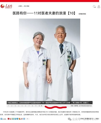 我来解释一个事情: 为什么董小姐的指导老师邱贵兴院士是骨科专家,而她的博士论文却是妇科影像方向的研究? 答:董小姐的师娘,是协和医院的妇产科主任主任。 有图有真相: 邱院士和林大夫,贤伉俪,上了人民网。 所以,董小姐的论文,有没有可能是得到了师娘的指点呢? 这里,重点讲一讲邱院士: 图3,邱院士面对着凤凰大讲堂的镜头,控诉赤脚医生对自己的“迫害”,还要