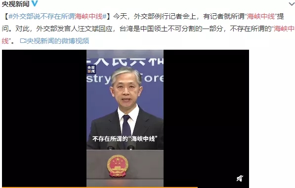 9月21日,外交部例行记者会上,有记者问“台湾海峡中线”的问题,外交部发言人汪文斌回应,台湾是中国领土不可分割的一部分,不存在什么所谓的“海峡中线”。 两个国家才有“中线”,一国之内,哪来的什么“中线”? 自己家的领土、领空、领海,哪来的什么“中线”,琼州海峡有“中线”吗? 今天台湾当局所谓“海峡