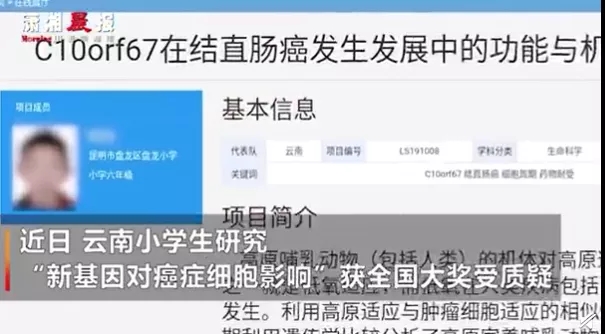 龙生龙,凤生凤,老鼠的儿子会打洞。研究员之子以“天才”实验获奖,再次证明,这句封建老话在今天仍旧是“至理名言”。 小学生因“结直肠癌基因敲除”获科技创新奖,你不吃惊吗? 一个被认为需要用昂贵实验仪器、需要进行分子操作,需要阅读大量英文文献,比研究生都难的实验项目,竟然由一个完全不懂的小学六年级学生,在五天之内完成了,真是一个&ld